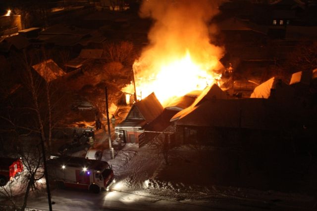 Двухэтажный деревянный дом сгорел в поселке Кедровый в Сургуте сегодня утром.