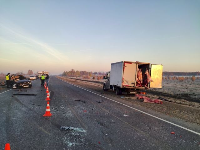 Под Каменском-Уральским водитель на иномарке протаранил фургон, перевозивший мороженое мясо.