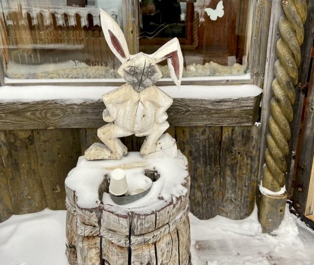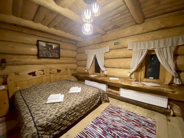 Остановиться на ночлег можно в туристическом комплексе "Абалак", построенном в древнерусском стиле. Номера, расположенные в теремах из сосновых бревен, теплые и уютные. Примечательно, что каждый имеет отдельный вход с улицы. Территорию украшают деревянные скульптуры, есть горка — пока еще не залитая, на которой зимой будут кататься дети. Также юные гости смогут посетить избушку бабы Яги, которая летом крутится вокруг своей оси, а зимой к их услугам лыжи и бублики. В ноябрьское воскресенье участники нашего инфотура были единственными посетителями комплекса, оставшимися на ночлег. Мы смогли поужинать в аутентичном трактире «Белая сова» и сходить в баню.