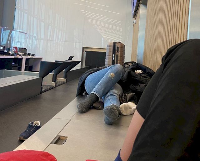 «Снег примерно по колено, одновременно шел град, сверкали молнии и гремел гром. Что-то невероятное! Приехав в аэропорт, увидели, что люди спят на полу и везде где можно. Мы устроились на ленте для движения багажа за стойкой для регистрации, там же у нас был и обед», - вспоминает девушка.