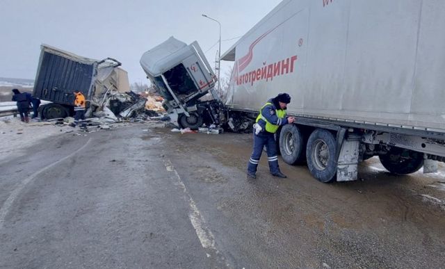 Две фуры столкнулись 27 января на 184 км автодороги Пермь - Екатеринбург.