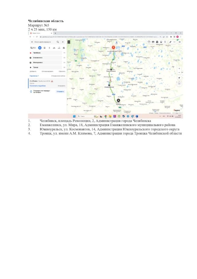 Пятый маршрут – 150 км. Из Челябинска в Еманжелинск, Южноуральск и Троицк.
