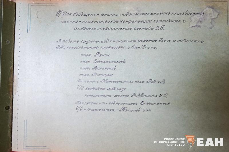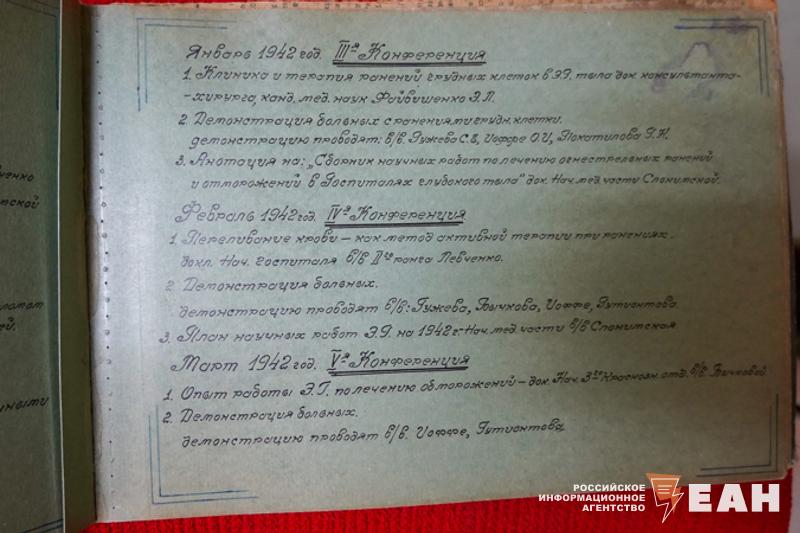 «В альбоме на фотографиях тех лет раненые: на отдыхе, во время процедур, приема пищи, занятий лечебной физкультуры. Кроме того, в этом альбоме есть результаты научных исследований. Наука не стояла на месте в годы войны, обобщались результаты сложных случаев, с некоторыми впервые тогда столкнулись. Здесь же есть графики и схемы. Приводятся итоги научных конференций, которые проводились в госпитале не реже чем раз в квартал», - говорит Нина Иванова.