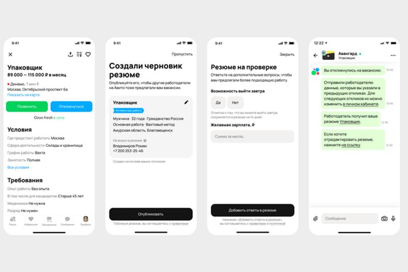 Сервис уже доступен в мобильных приложениях «Авито» для Android и IOS, а на следующей неделе появится в десктоп версии. Он учитывает ключевые параметры, важные для работодателей на этапе первичного отбора. Из личного кабинета пользователя в анкету добавляются ФИО, контактные данные, гражданство, дата рождения и опыт работы. Блок сведений о желаемых условиях труда и карьерных предпочтениях формируется на основе описания вакансии, на которую откликается кандидат. С учетом этих данных система создает черновик резюме — соискатель может опубликовать его в один клик или дополнить самостоятельно.
