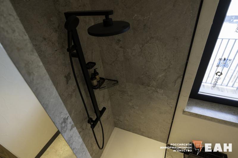 Номера или юниты будут выполнены в едином стиле альпийского шале – увидеть это мы смогли в шоуруме. В семейном номере предусмотрены кухня-гостиная, две спальни, два санузла. В основе отделки лежат натуральные материалы - в частности, сосна. Дизайнеры продумали все до мелочей – от вилок и ложек до халатов и тапочек. На первом этаже комплекса будут оборудованы комнаты для хранения спортинвентаря, то есть резидентам не придется нести лыжи или сноуборды в номер.