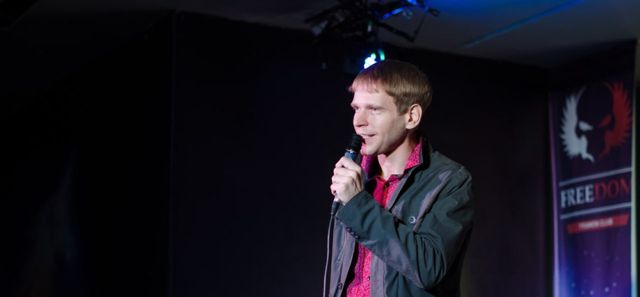 Уроженец Выборга не жалел эмоций, швырял свои листки со стихами на пол и спускался в зал к зрителям. Там же он начал порывисто двигаться с микрофоном.