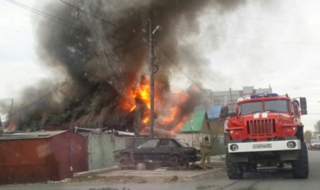 Частные дома на улице Совхозной в Тюмени горят один за другим. Дом №79 вспыхнул сегодня утром. О пожаре сообщили соседи.