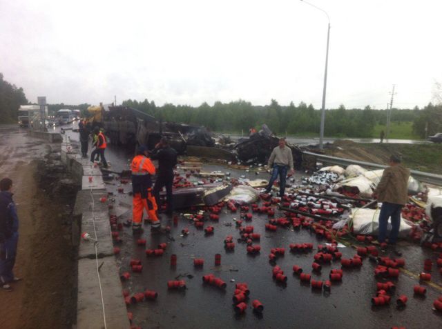 По информации очевидцев, один автомобиль был загружен муфтами для газовых труб, второй - металлом. В результате ДТП почти весь груз оказался на проезжей части. Есть пострадавший.