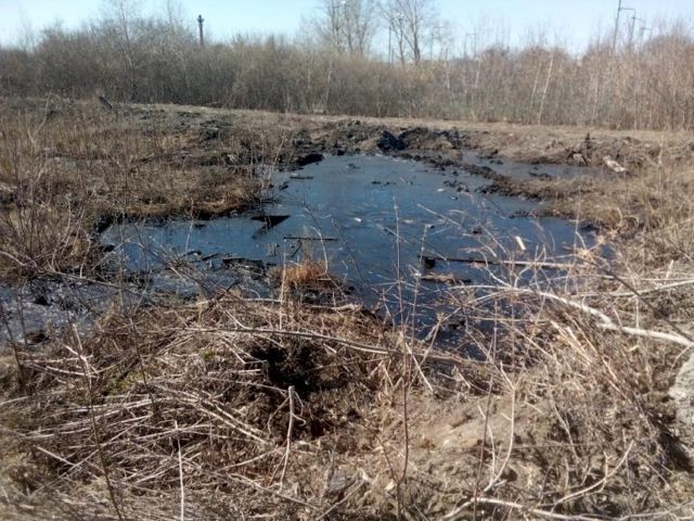 В Тюмени, в районе ДОК разлилась большая лужа горючего. Местные жители сообщают журналистам, что в нее попадают животные и гибнут в топливе.