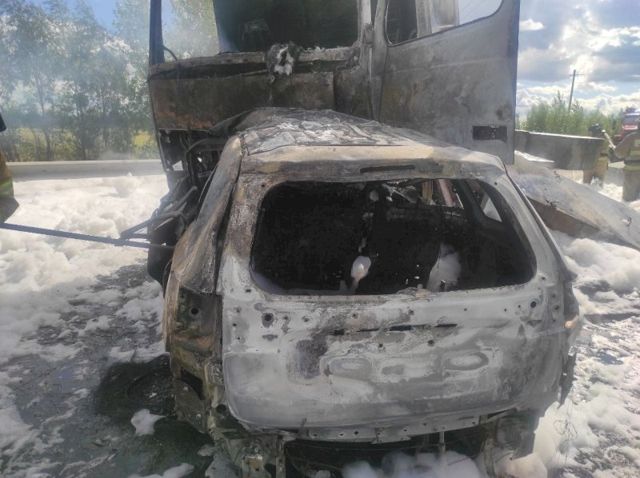 «Трагедия на 52-м километре автодороги Ялуторовск - Ярково, здесь столкновение легкового автомобиля и грузовика, который перевозил бетонные блоки и выехал на встречную полосу, с последующим возгоранием обоих автомобилей», – говорится в сообщении.