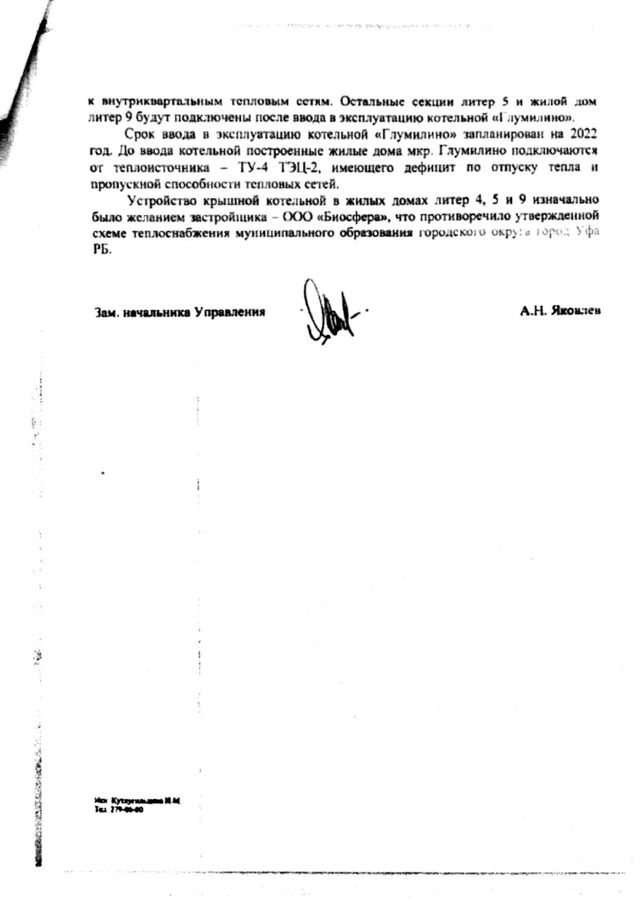 Получается, что возможность подключения к газу есть, проект строительства автономной котельной получил все разрешения, но из-за позиции администрации Уфы затраты жителей ЖК «Биосфера» на отопление увеличатся более чем в два раза, кроме того, они лишаются общедомового имущества.
