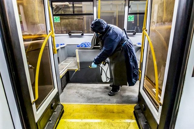 Сотрудники сначала протирают поручни, сиденья, подоконники, а следом опрыскивают полы. Затем машину при закрытых дверях выдерживают до 30 минут для уничтожения вирусов, бактерий и других возбудителей опасных инфекций.