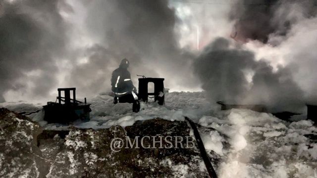 «По прибытию установлено, что происходит горение подземного резервуара с мазутом, объем жидкости составляет порядка 30 м³ и разрушено кирпичное строение 3х4 метра», - сообщает МЧС.