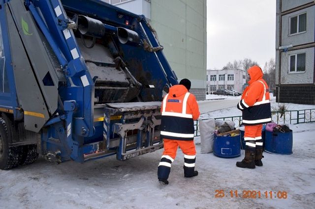 Мусорных контейнеров в домах нет, отходы из мусоропроводов собирают в какие-то емкости, они их называют «тазиками». Дворник вытягивает этот «тазик» наружу и оставляет на улице. Отходы грузят в мусоровоз вручную. Водители рассказывали, насколько это тяжелый труд, после смены руки не поднимаются. Мы рекомендовали управляющей компании установить нормальные контейнеры или отказаться от мусоропроводов и оборудовать контейнерные площадки.