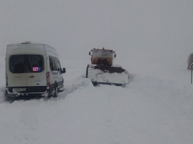 А автобусе находится 17 пассажиров. Отопление работает. К месту уже направлен трактор для расчистки дороги.
