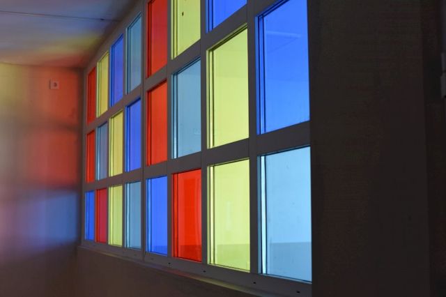 Под лабораторию объединили четыре небольших кабинета общей площадью 58 кв. м. В ходе ремонта были заменены все инженерные коммуникации, выровнены и покрашены стены и потолок, переделан пол. Также строители установили новые двери и евроокна и обеспечили качественное освещение. Украшением помещения стал необычный витраж.